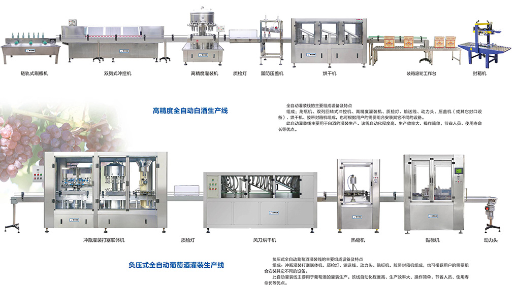 ?SYGZ-36型真空负压自动灌装机 该系列灌装机采用低真空负压式灌装,广泛应用于果汁、果醋、不含气的葡萄酒、黄酒、果酒、饮 料、酱油、醋及其它液体的灌装,灌装容量范围大,适用瓶型多...